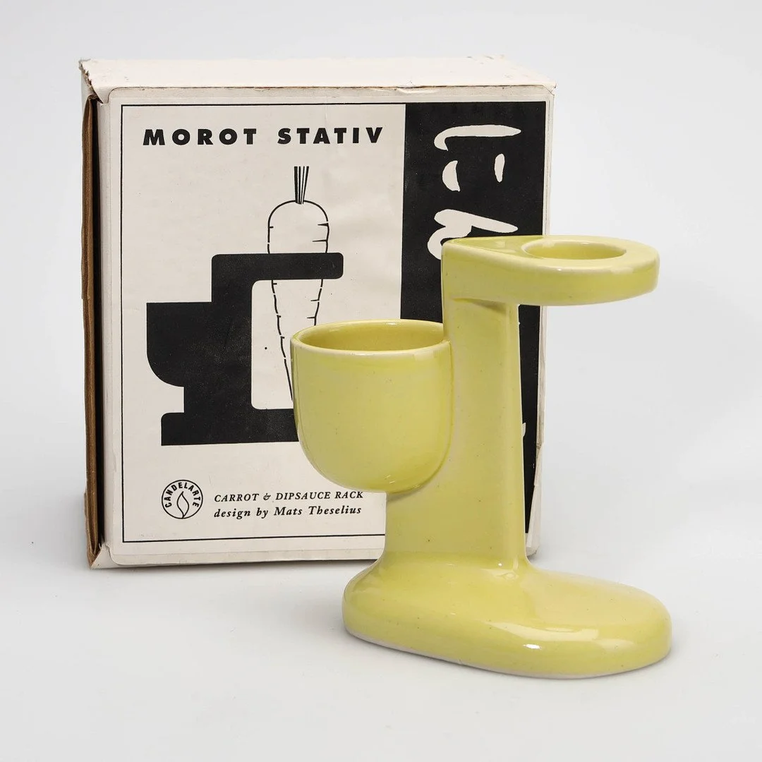 Sculpture Excalibur, 1996. Faience carrot stand for one carrot and dip sause. Produced by Candle Arte/Marek Chodor for Mats Theselius.